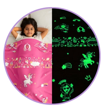 Pink Unicorn Glow Blanket for Kids | Glow in the Dark, Soft & Cozy, Ages 0–15 Years