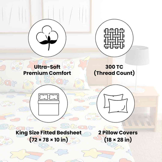 3pc King Size Bedsheet Set – Fitted Bedsheet & 2 Pillow Covers | Space Bedsheet Set