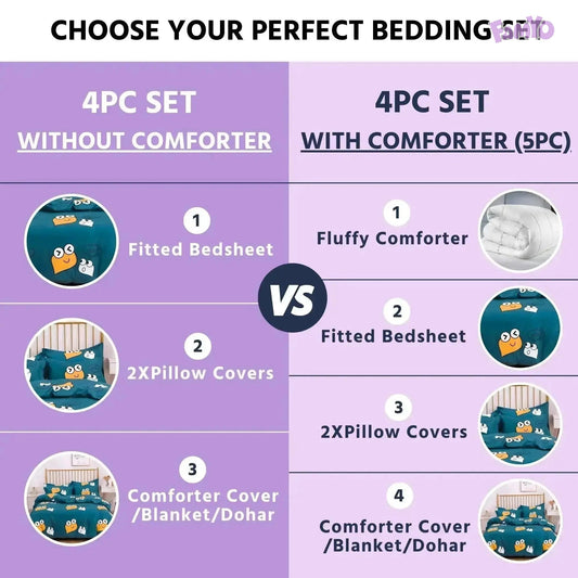Cute Smiles 250TC King Bed Sheet Set (Set of 4 or Set of 5)