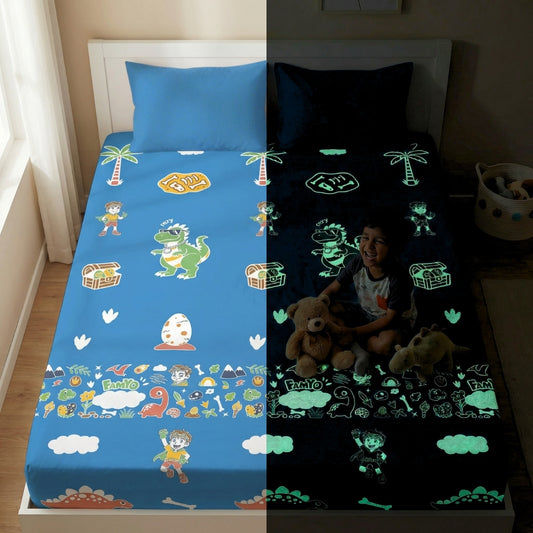 Rexy the Dino King Size Glow Bedsheet Set | Glow Maxx Series | 300 TC Premium Cotton-Blend Microfiber | Perfect Gift for Kids