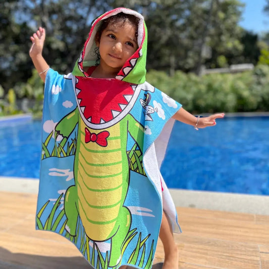 Crocodile Baby Towel - Poncho Towel for Kids, 1-7 years | Quick-Drying Microfiber Kids Bath Towel