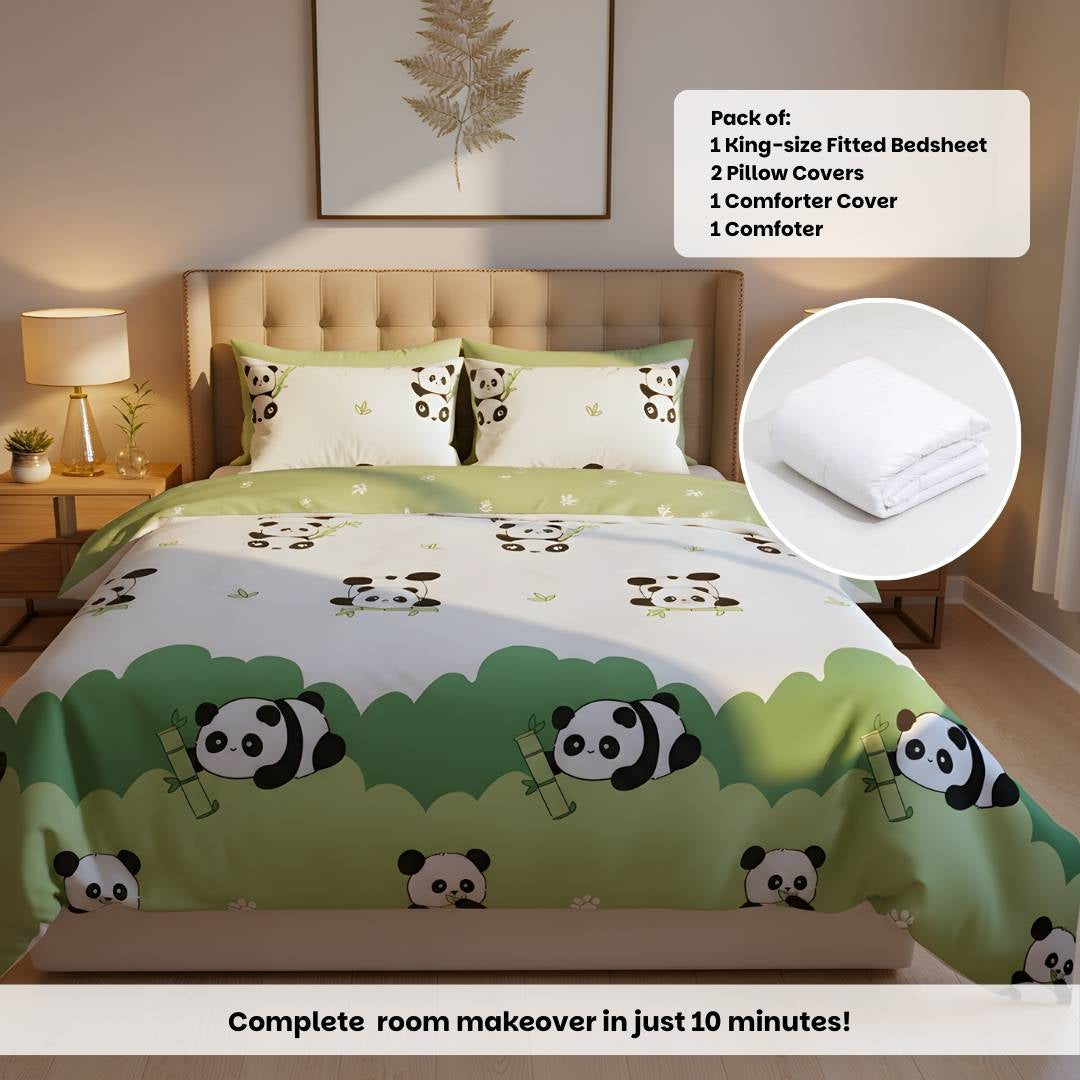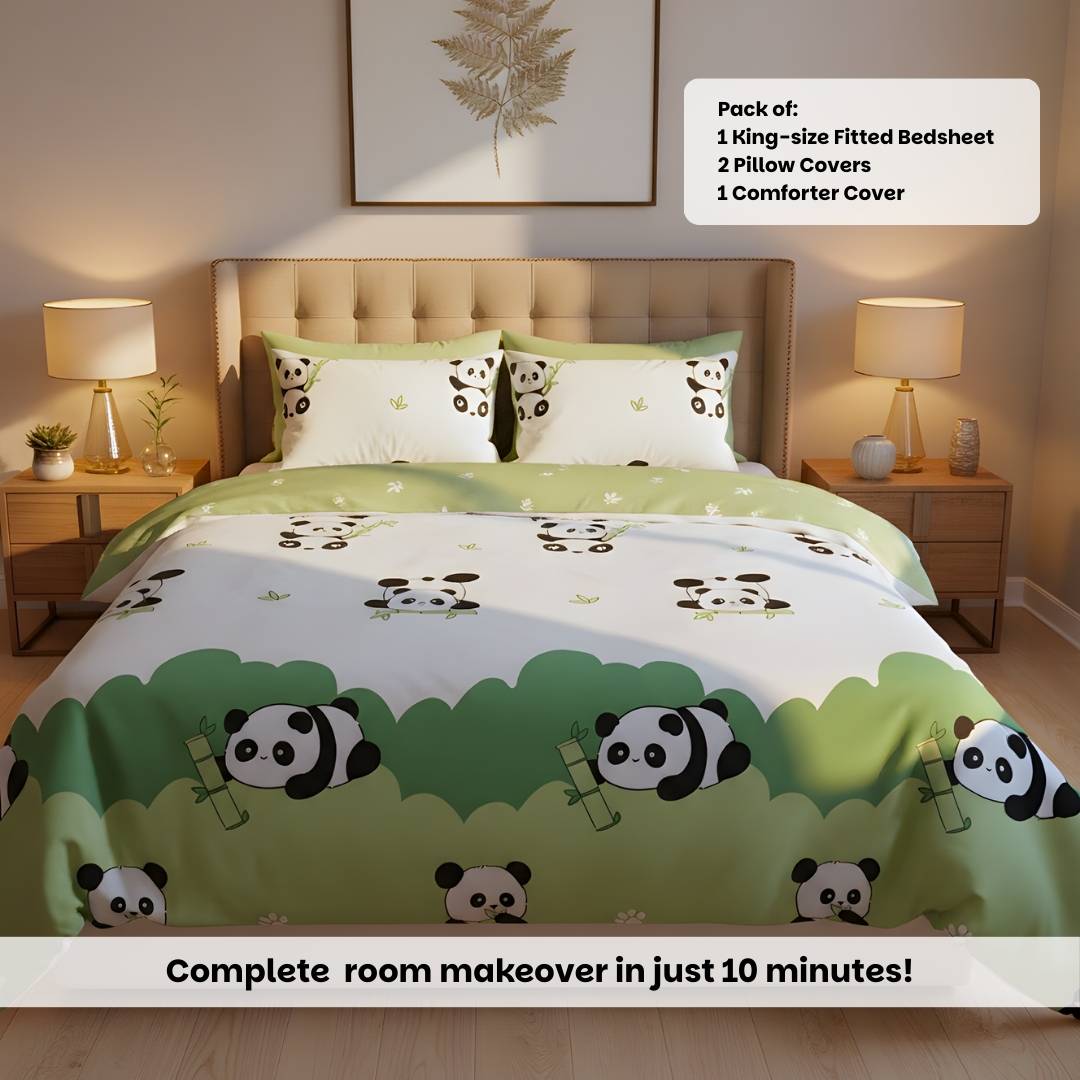 Green Panda 250TC King Bed Sheet Set (Set of 4 or Set of 5)