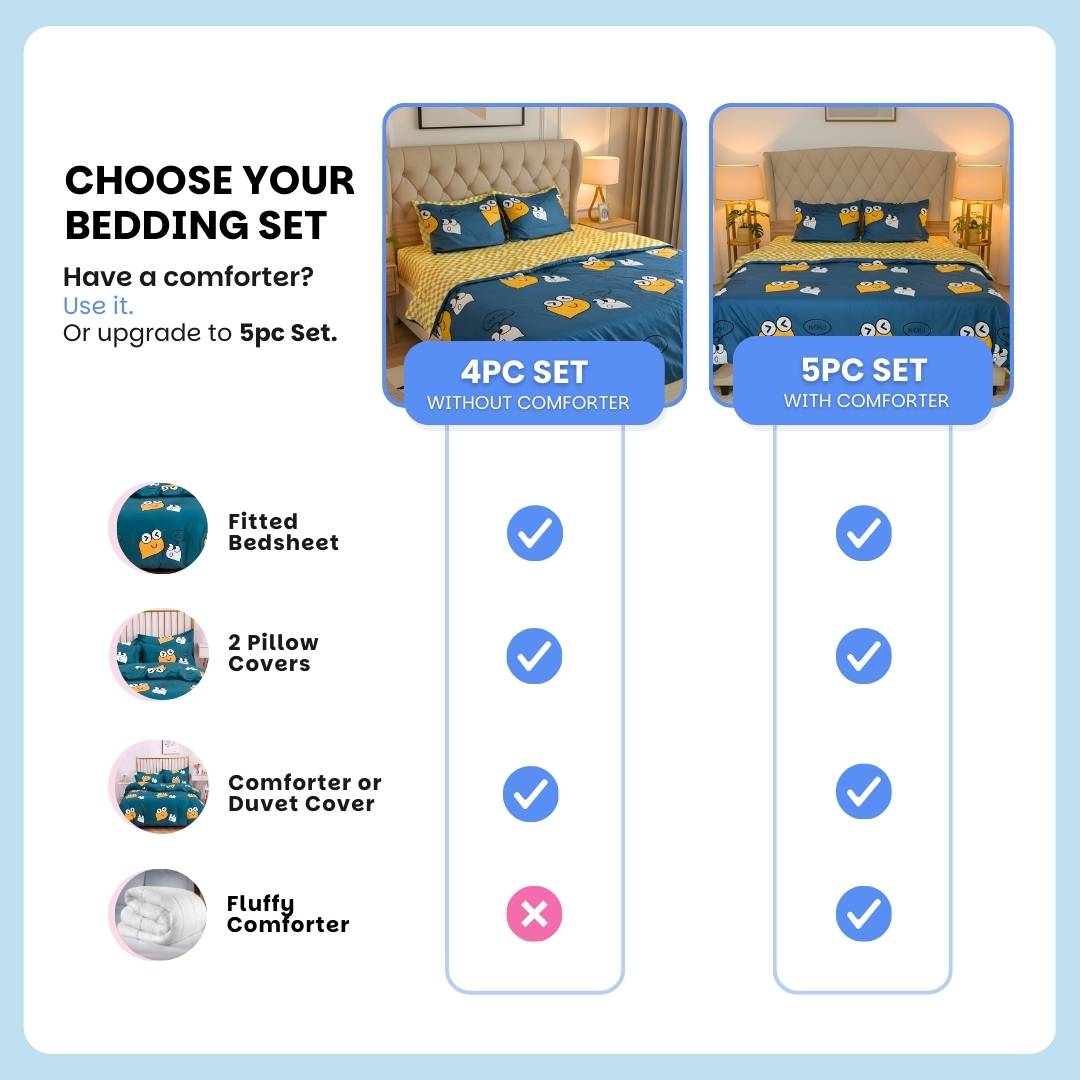 Cute Smiles 250TC King Bed Sheet Set (Set of 4 or Set of 5)