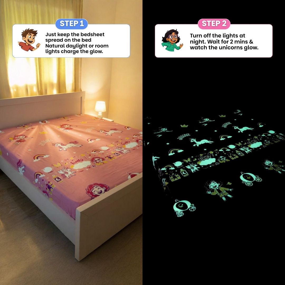 Some nights are meant to sparkle—where little dreamers drift into fairylands, follow rainbows, and fall asleep smiling. June the Unicorn Glow Bedsheet from Famyo’s Glow Maxx Series transforms everyday sleep into a magical, glow-filled experience your child will look forward to every night.